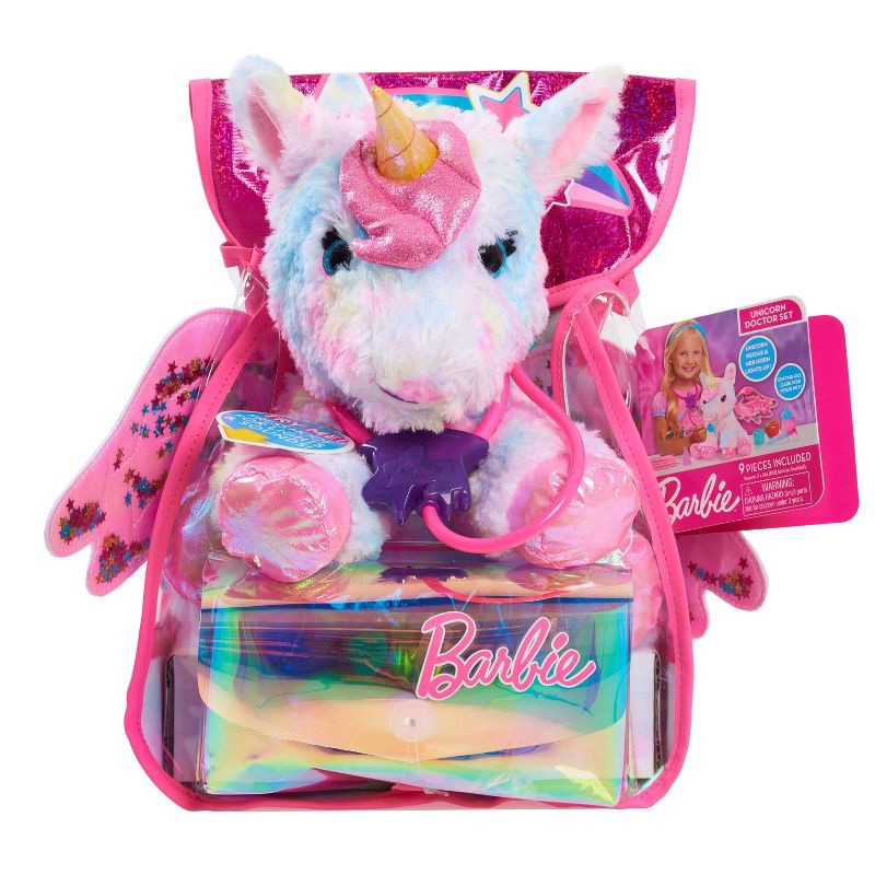 Kids can be a veterinarian with the Barbie Dreamtopia Unicorn Doctor Set. This adorable role play set is fun for travel and includes a super soft plush unicorn. Made of beautiful pastel tie-dye fabric…