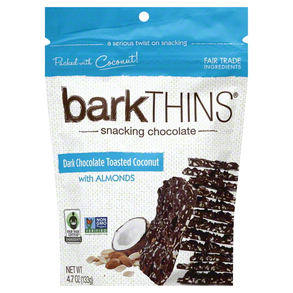 Finally, a snack you can feel good about! Fair trade certified, kosher certified and non-GMO still equals delicious in these crisp dark chocolate, almond and coconut bark treats. Enjoy the perfect com…