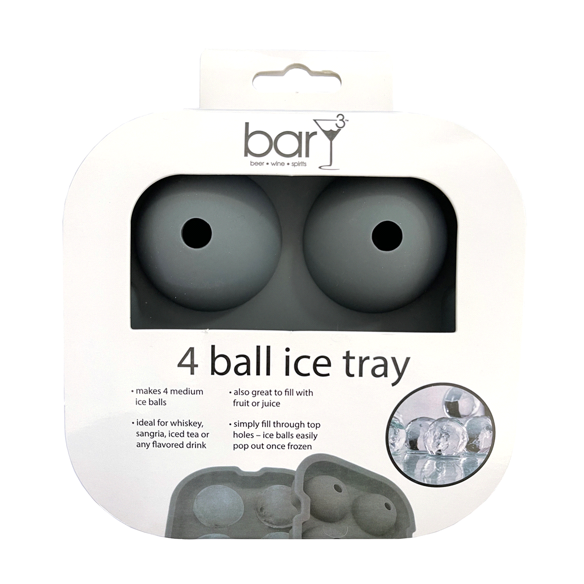 Elevate your drink experience with BARY3 grey ice trays. The 4 ball ice tray is made with BPAfree, foodsafe silicone. It keeps its shape, is stain resistant, and does not adhere to ice, making it easy…