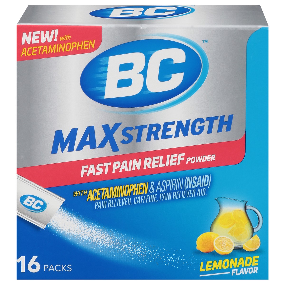 In Each Powder Active Ingredients: Acetaminophen (500 mg), Pain reliever; *Aspirin (NSAID) (500 mg), Pain reliever; Caffeine (65 mg), Pain reliever aid. Inactive Ingredients: Flavor, Guar Gum, Mannito…