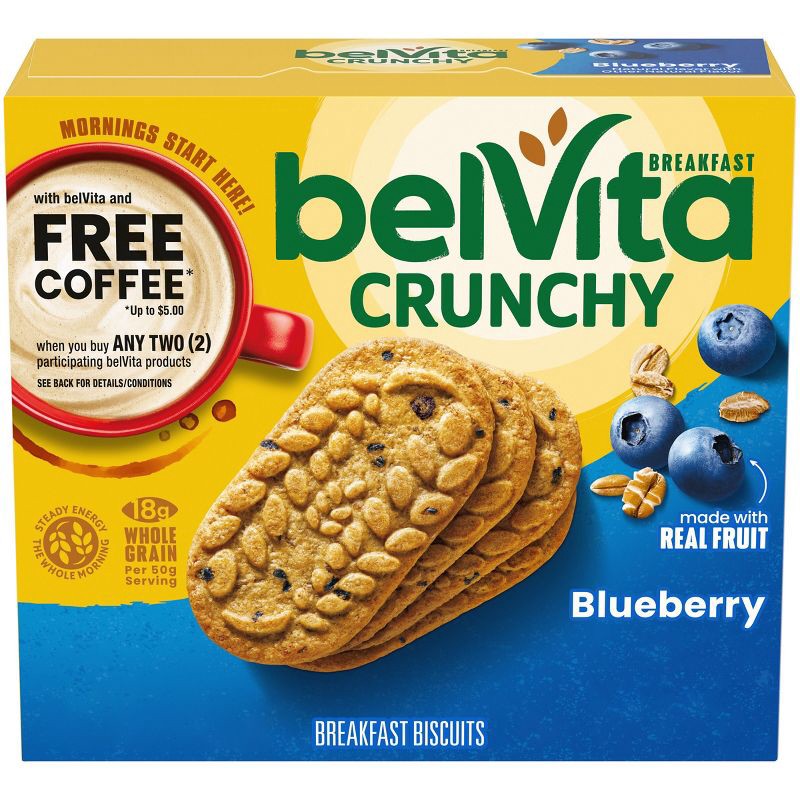 Start your morning off right with lightly sweet and crunchy belVita Blueberry Breakfast Biscuits. These bulk breakfast biscuits combine wholesome grains with fruity blueberry flavor for a delicious br…
