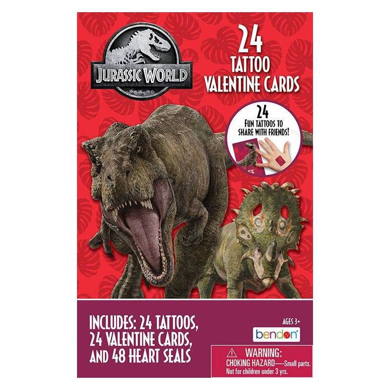 Bendon 24ct Universal Jurassic World Tattoos and Valentine's Day Cards with 48ct Heart Seals