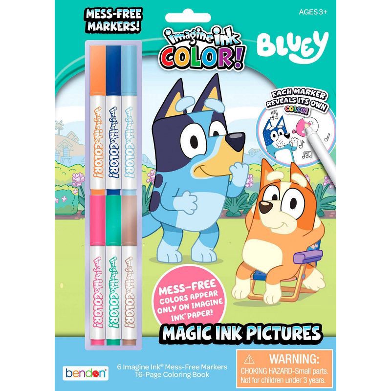 Little ones can use their choice of color on every page with Bendon's Bluey Imagine Ink® COLOR! Coloring Book! This patented technology magically reveals the color of each Magic Ink marker. Your littl…