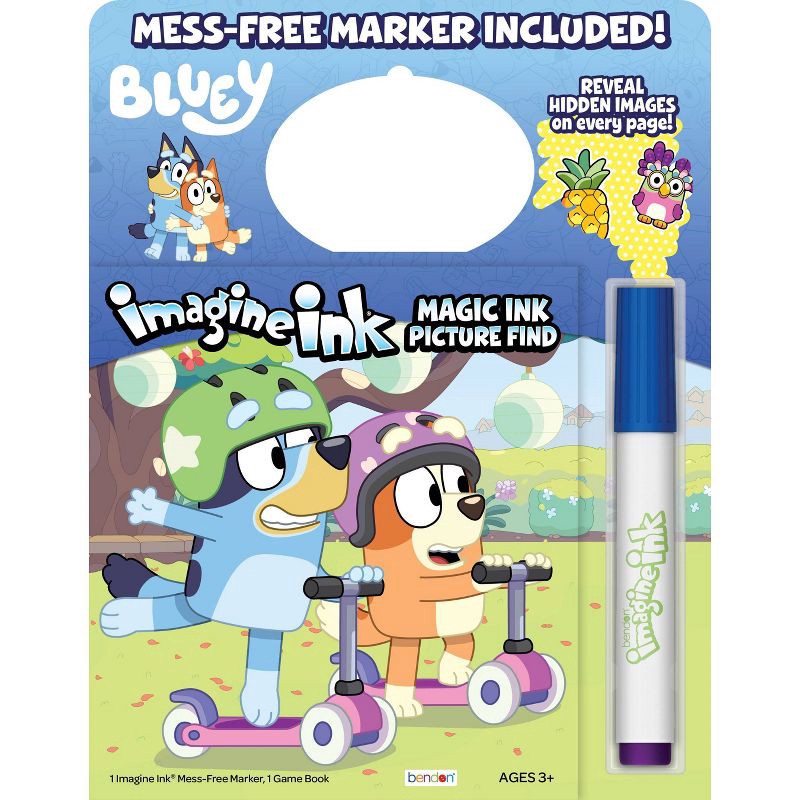 Reveal hidden images on every page with Bendon's Bluey Imagine Ink® Magic Picture Find! This patented technology magically reveals a rainbow of colors with just one Magic Ink marker. Your little artis…