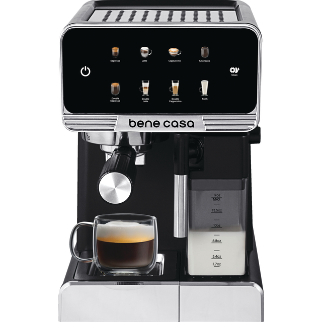 Be your own barista with the Bene Casa combo Espresso & Latte Maker. This 2-in-1 kitchen staple offers espressos, cappuccinos, lattes and hot milk with one simple touch of a button. This versatile mac…