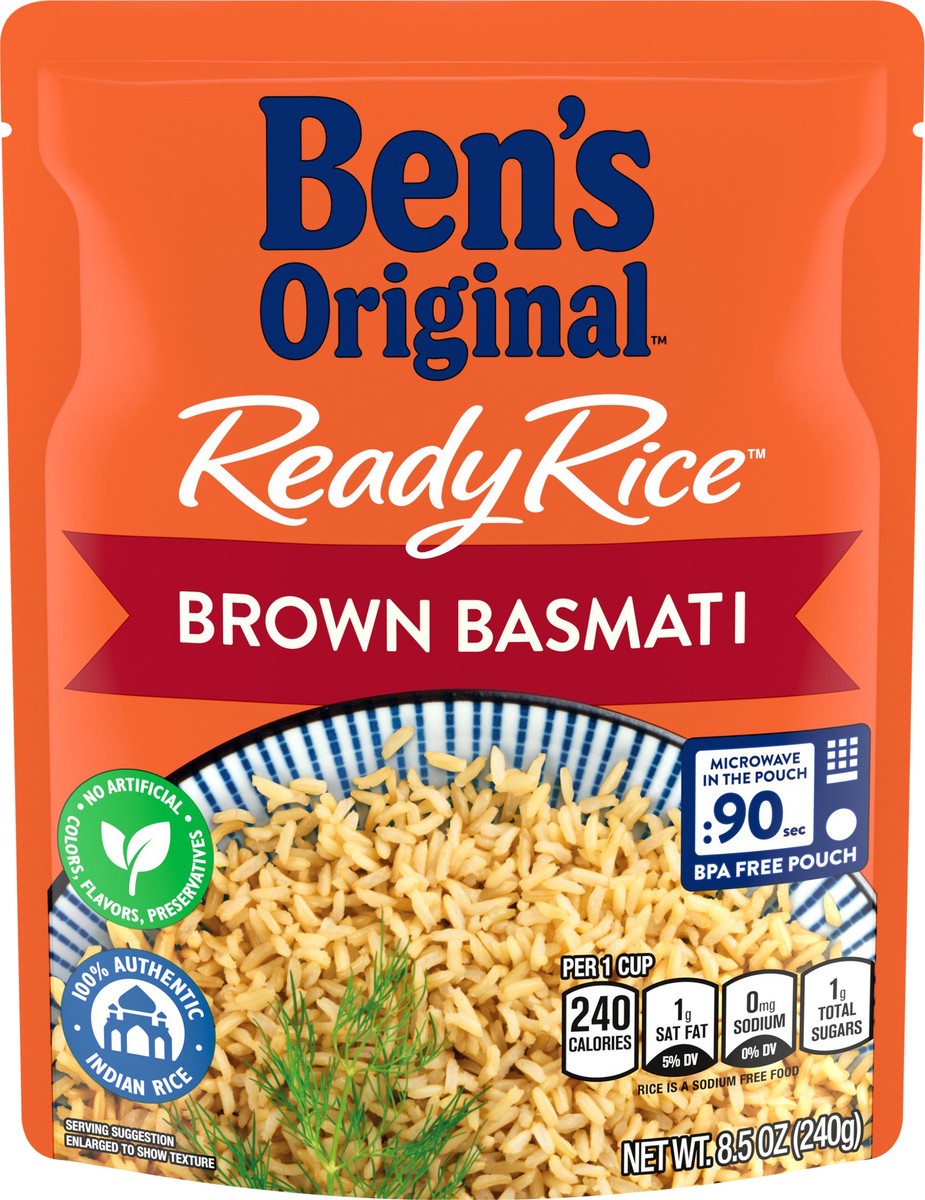 BEN'S ORIGINAL Ready Rice Brown Basmati Rice brings the rich, nutty aromas and flavors of India to your dinner table in just 90 seconds. This easy microwave rice pouch contains authentic 100% whole gr…
