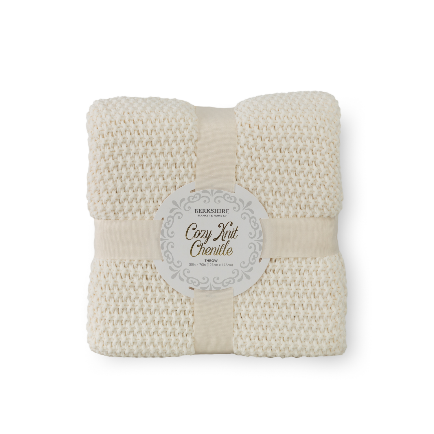 BERKSHIRE BLANKET Berkshire Seed Knit Chenille Throw Cream, 50 in x 70 in