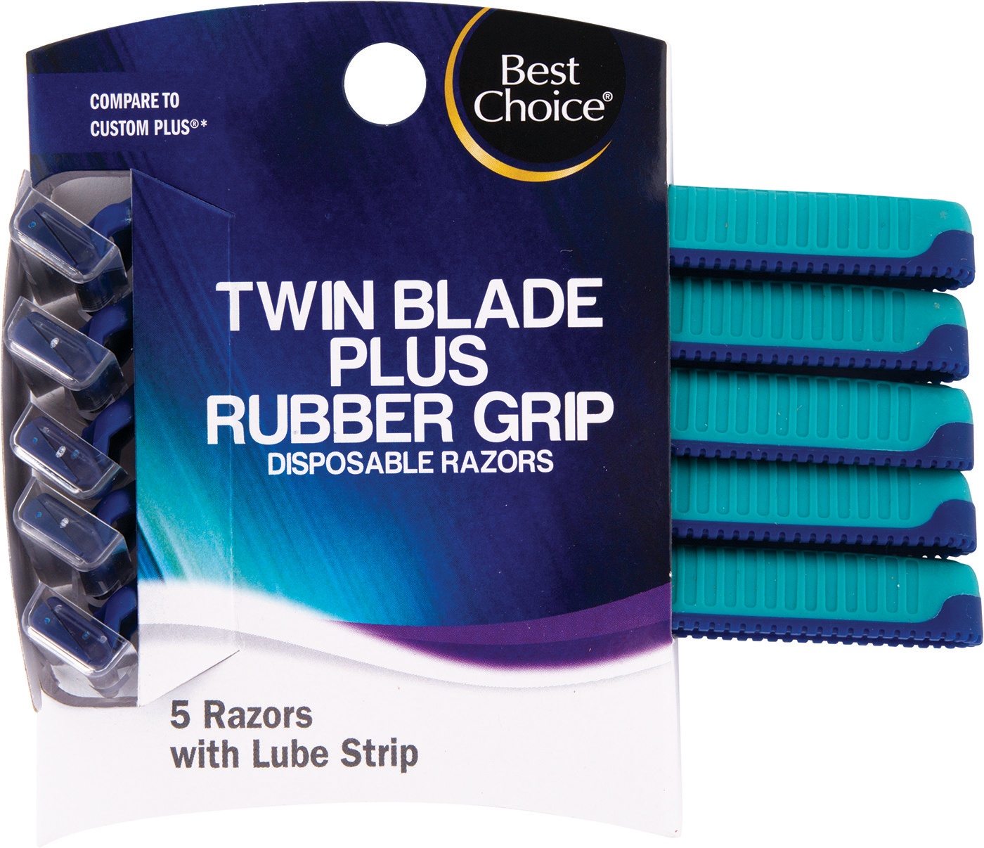 slide 1 of 1, Best Choice Twin Blade Plus Disposable Razor With Rubber Grip, 5 ct