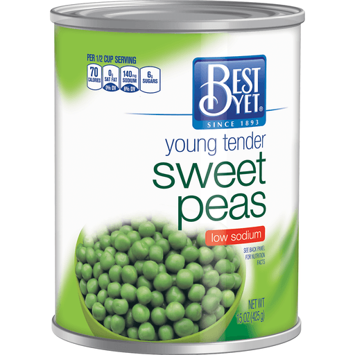 slide 1 of 1, Best Yet Low Sodium Peas, 15 oz