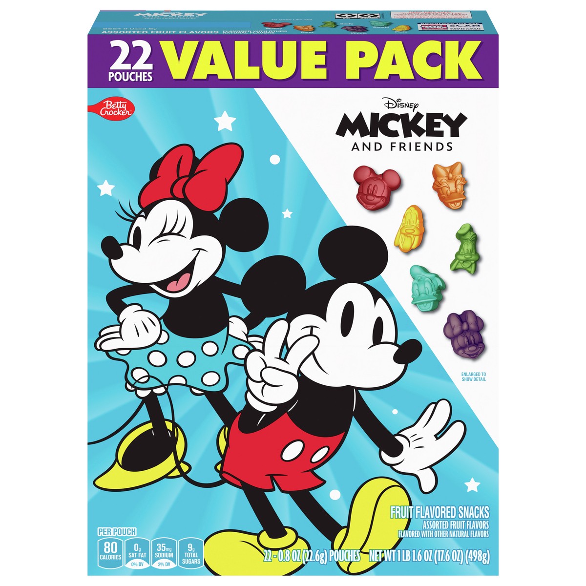 Betty Crocker Disney Mickey and Friends Fruit Flavored Snacks, Treat Pouches, Gluten Free Snack, Value Pack, 22 Ct, 17.6 oz