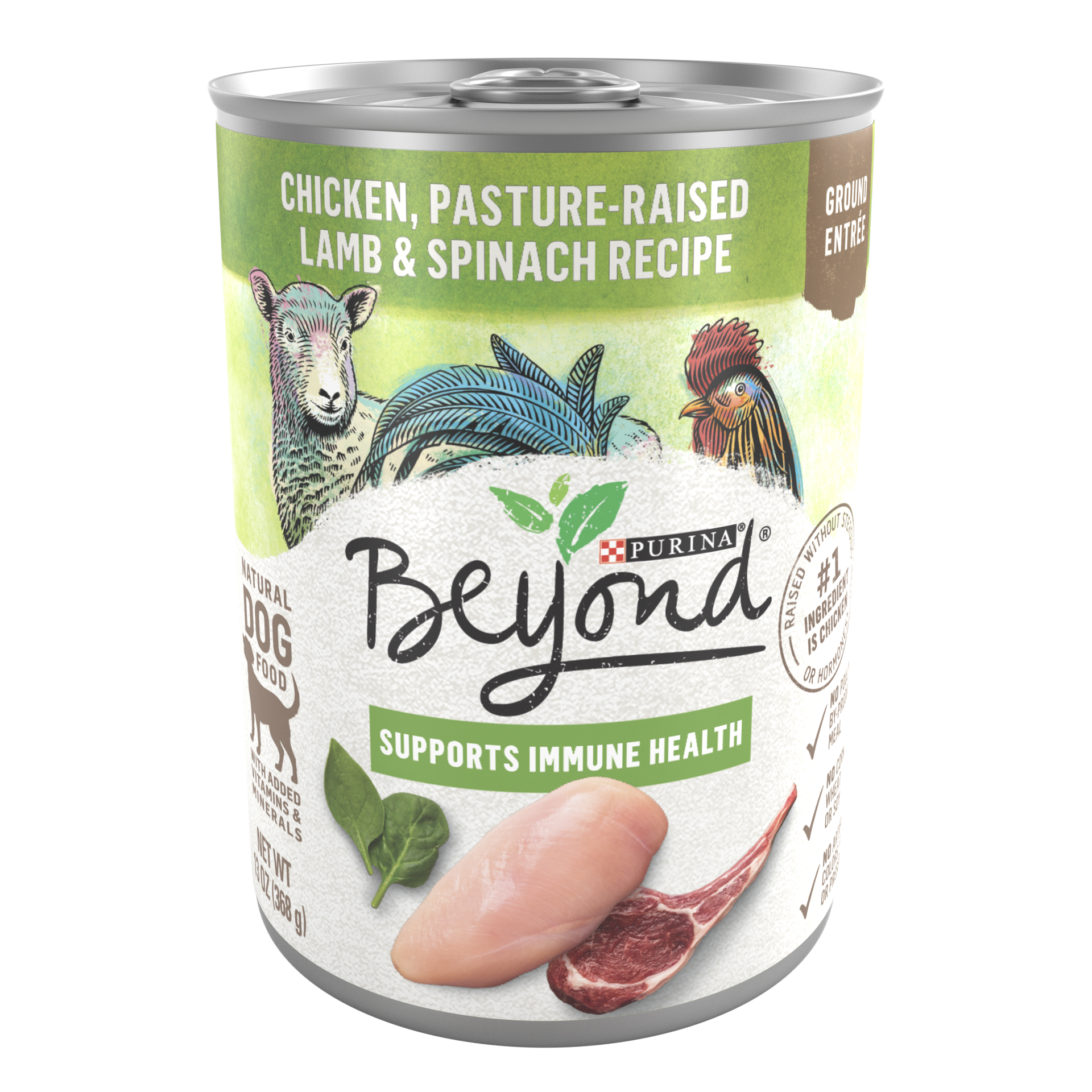 Present your canine companion with a healthy and delicious high protein wet dog food by serving Purina Beyond Chicken, Lamb and Spinach Grain Free Dog Food Natural with Added Vitamins and Minerals. Fe…