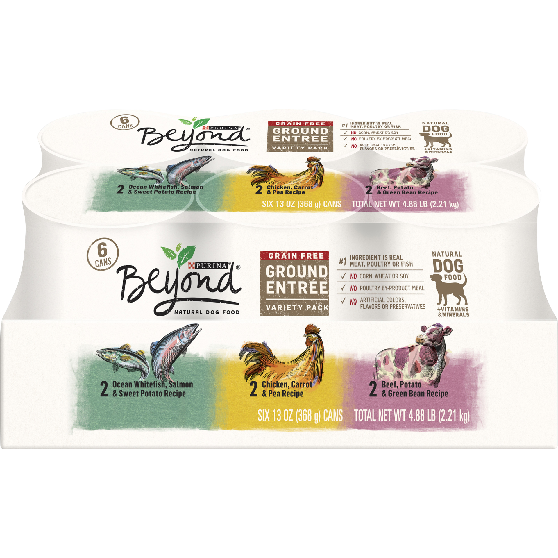 Offer your dog a variety of grain-free mealtime options with this Purina Beyond Grain Free Ground Entrees adult wet dog food variety pack. Each recipe in this pack features real beef, chicken or ocean…