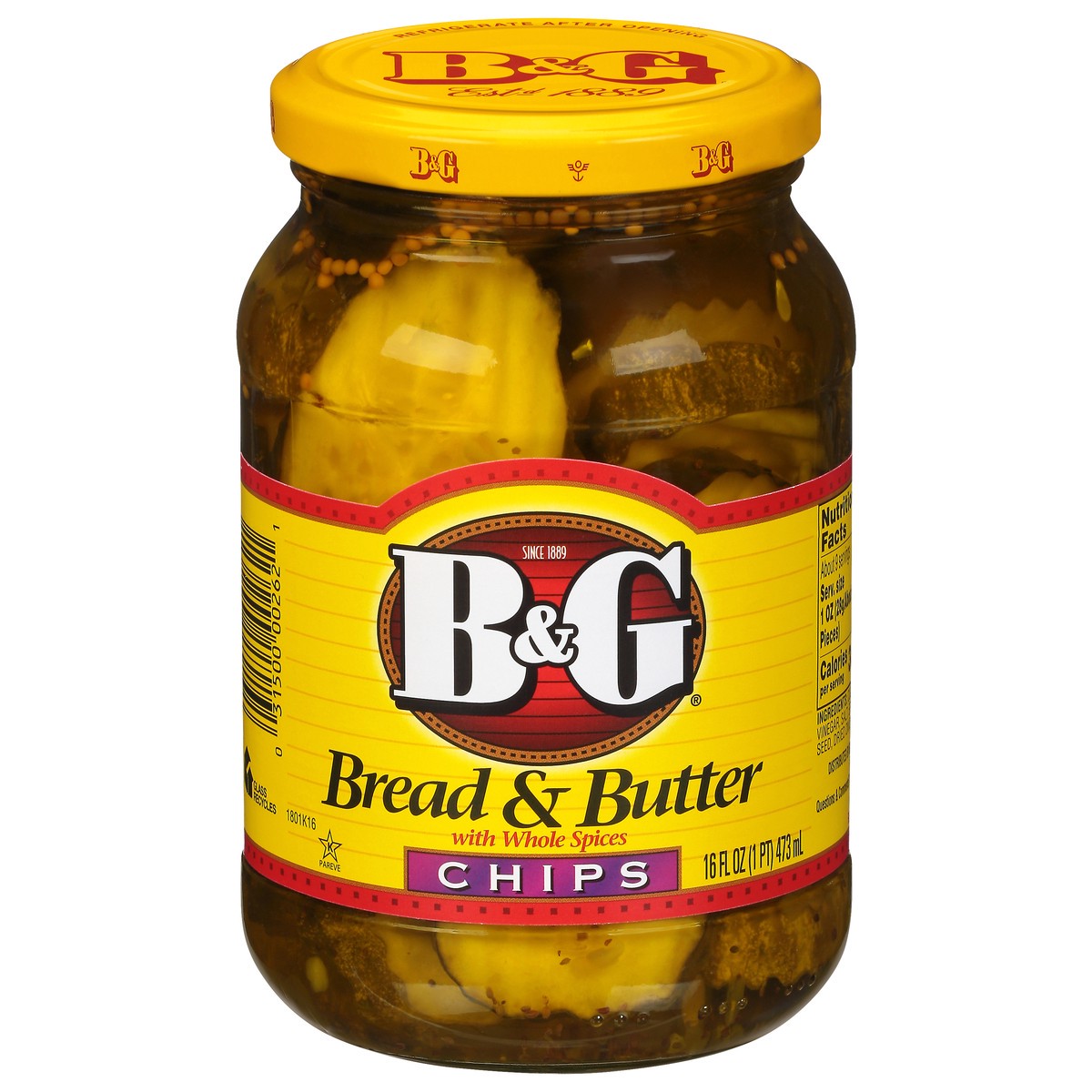 B&G Chips Bread & Butter Pickles with Whole Spices 16 fl oz