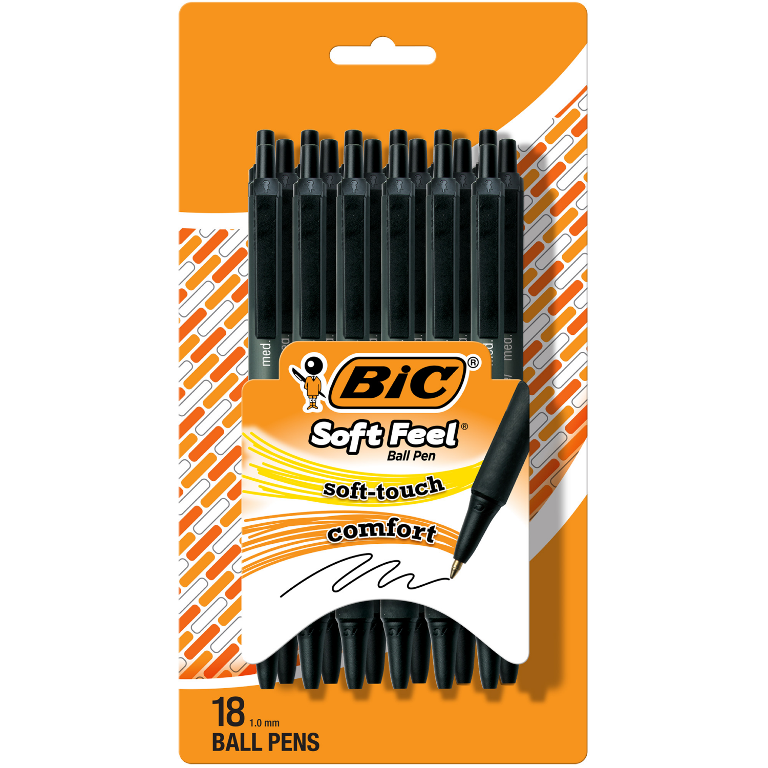 BIC Soft Feel Retractable Ball Point Pen, Medium Point, 1.0MM, Black, Pack Of 18