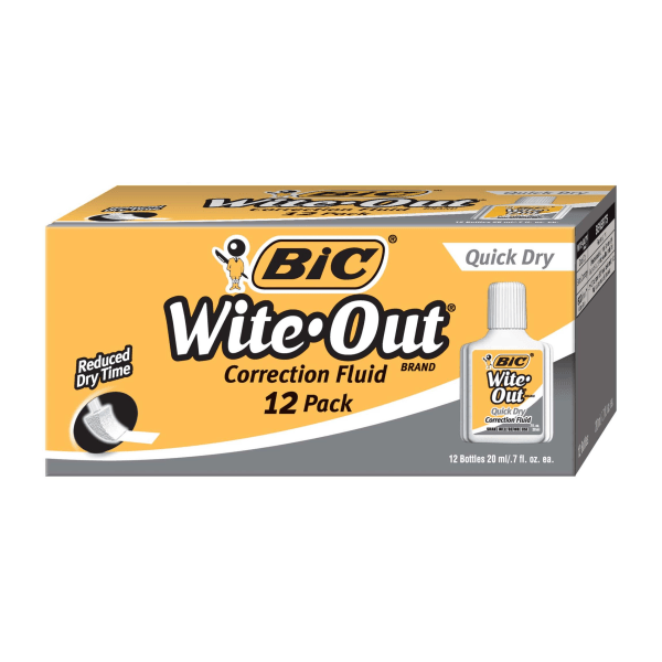 BIC Wite-Out Correction Fluid With Foam Applicator, Quick Dry, White, Pack Of 12
