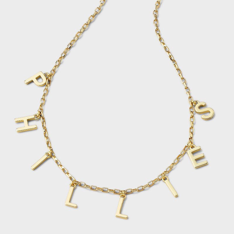 slide 4 of 4, Bijoux Sport by Luv Aj MLB Gold Charm Cubic Zirconia Letter Necklace - Philadelphia Phillies: Brass Chain, 16" Length, 1 ct