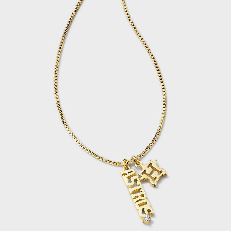 Bijoux Sport by Luv Aj MLB Gold Cubic Zirconia Charm Necklace - Houston Astros: Brass Chain, 16" Length
