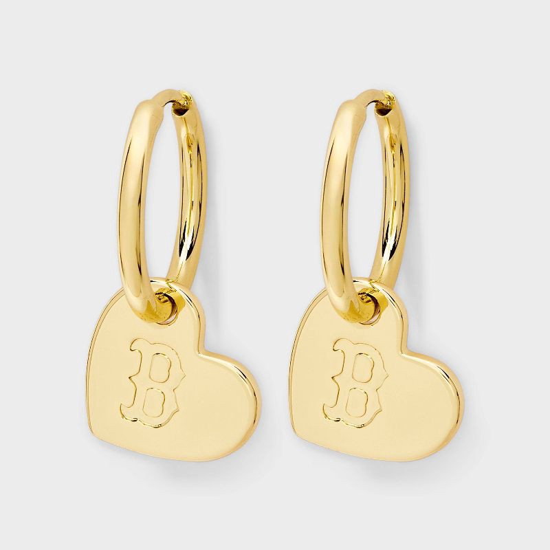 Bijoux Sport by Luv Aj MLB Gold Logo Heart Hoop Earrings - Boston Red Sox: Brass Snap Closure, 1" Size