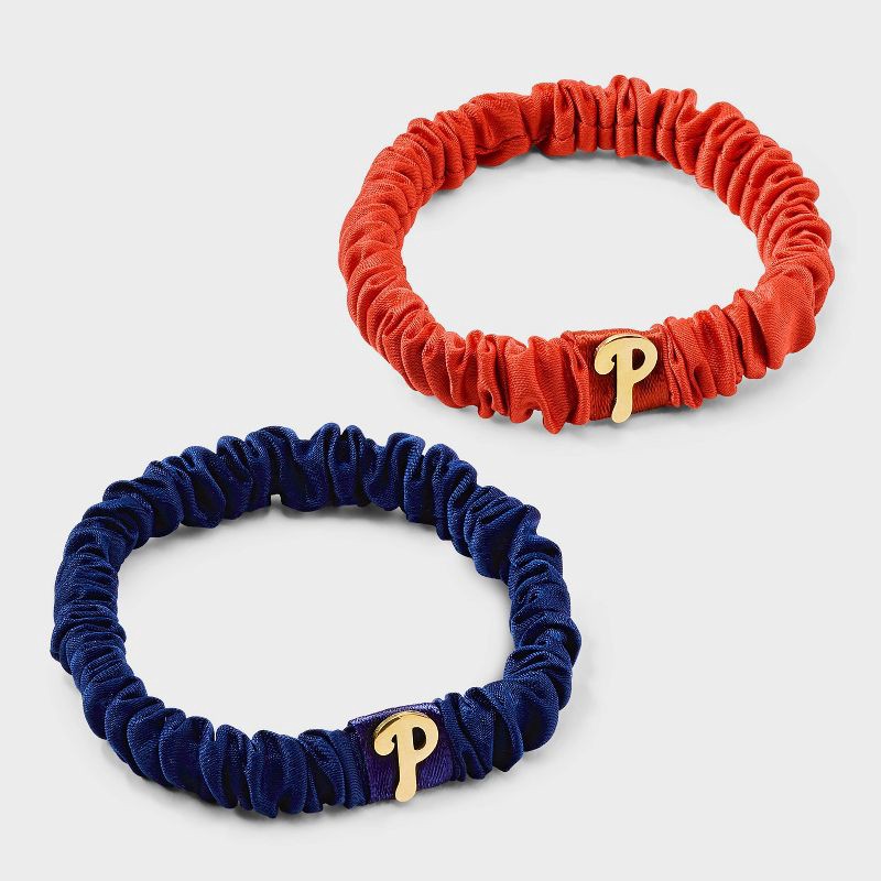 slide 1 of 2, Bijoux Sport by Luv Aj MLB Logo Silky Hair Ties 2pc - Philadelphia Phillies: Fashionable Elastic Bands for All Hair Types, 2 ct