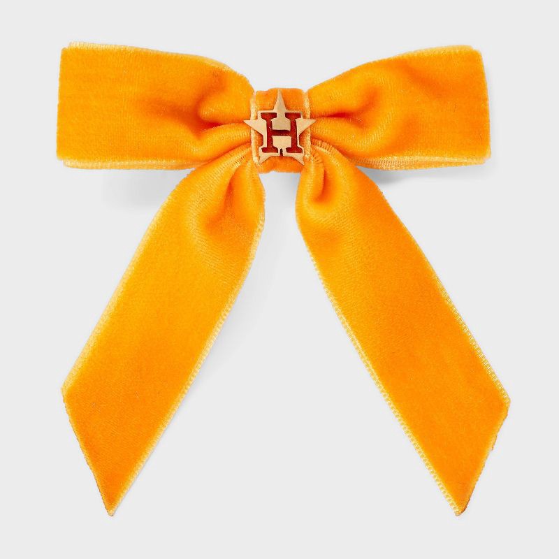 slide 2 of 2, Bijoux Sport by Luv Aj MLB Logo Velvet Hair Bow - Houston Astros: Polyester & Stainless Steel Hair Clip, 1 ct