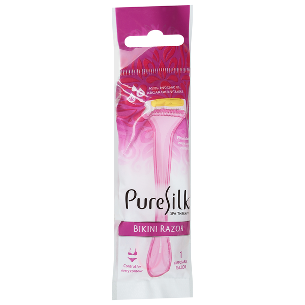 Aloe, avocado oil, argan oil & vitamin E. Fine blade and easy to rinse cartridge. Spa therapy. Control for every contour. www.pure-silk.com. Questions/Comments: www.pure-silk.com. And for legs like pu…