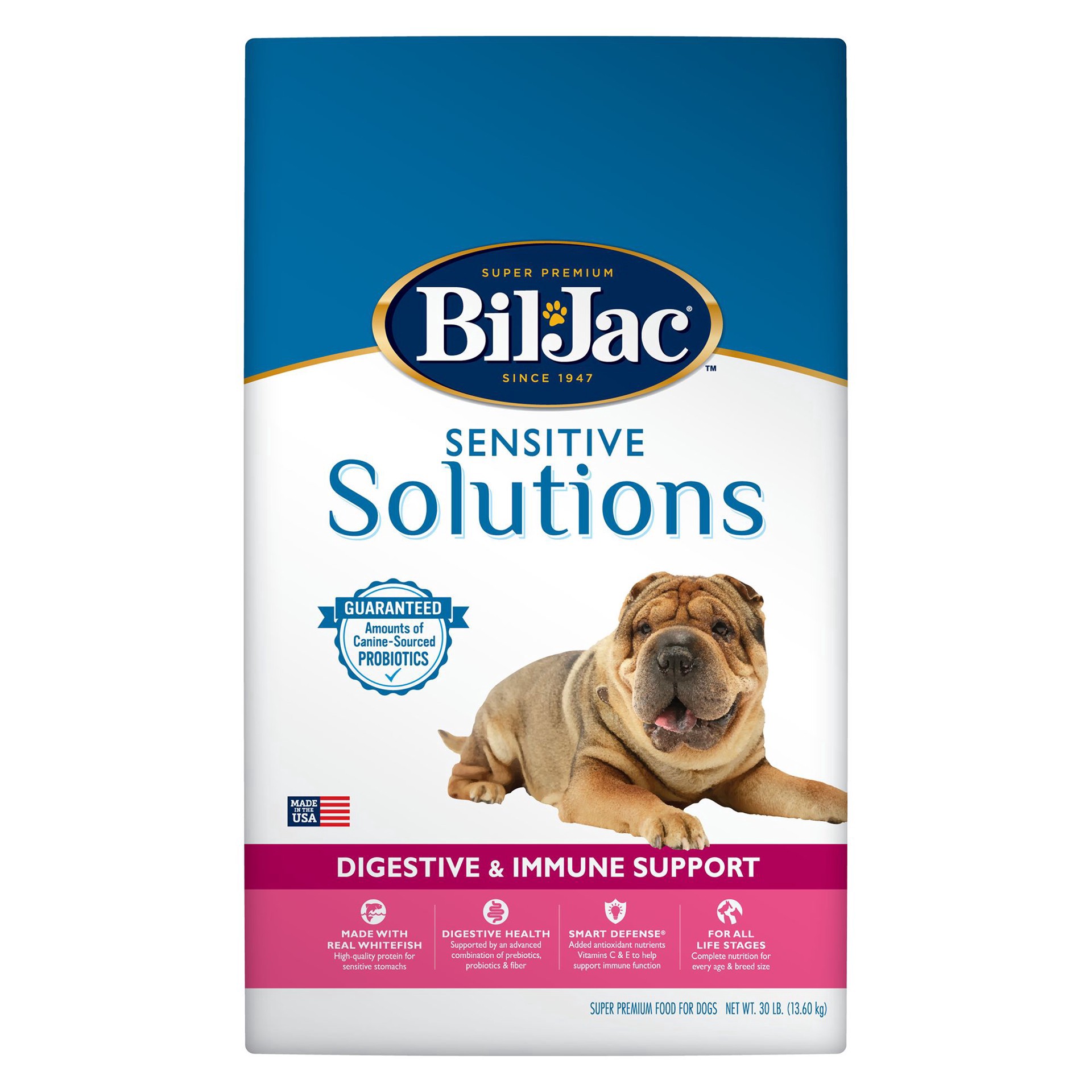 slide 1 of 1, Bil-Jac(r) Sensitive Solutions All Life Stage Dry Dog Food - Digestive & Immune Support, 30 lb