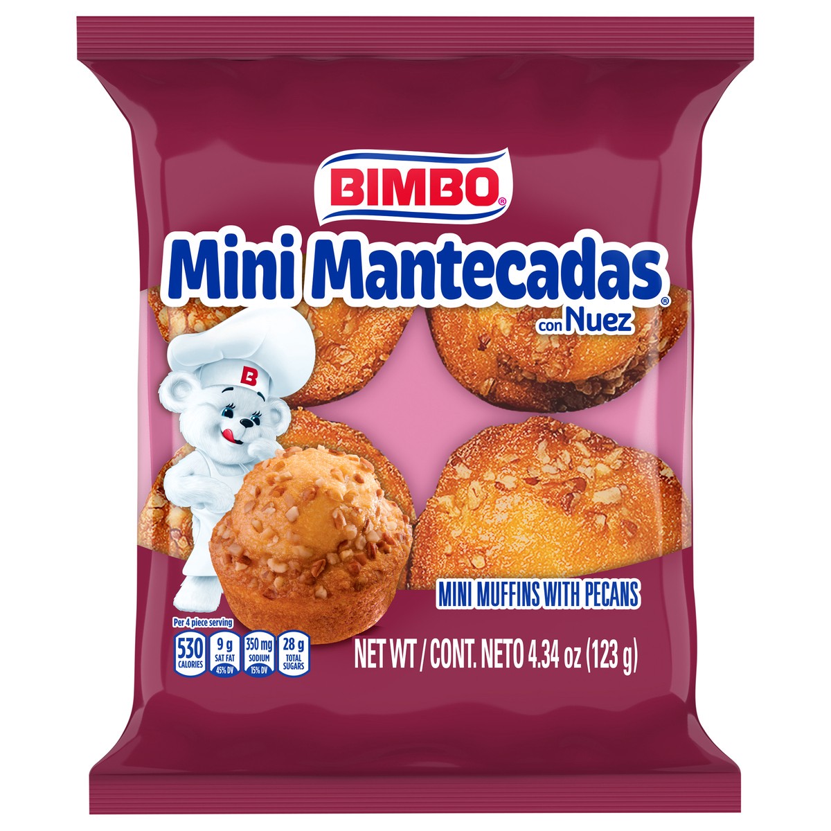 A smaller version of the original, Mantecadas have a subtle artificially flavored vanilla taste, loaded with pecans, and are baked with love like all Bimbo breads and pastries. Freshly wrapped and moi…
