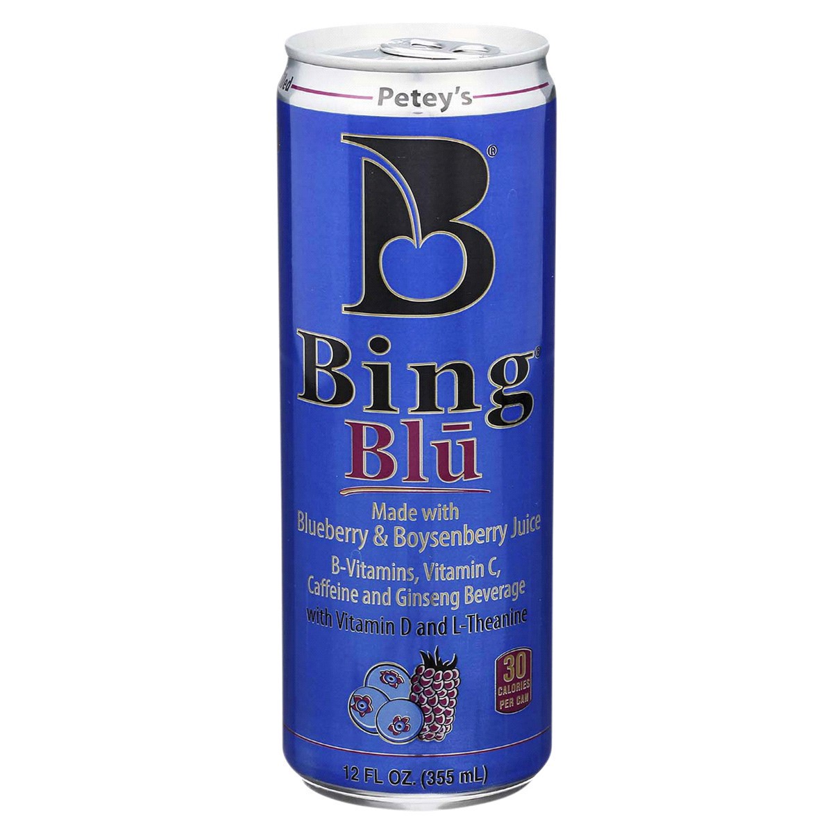 Real blueberry and boysenberry juice. Cases contain 24 12 ounce cans. Low calorie-only 30 calories per can 100% daily value of Vitamin C 5 B- Vitamins. Vitamin D L-theanine.