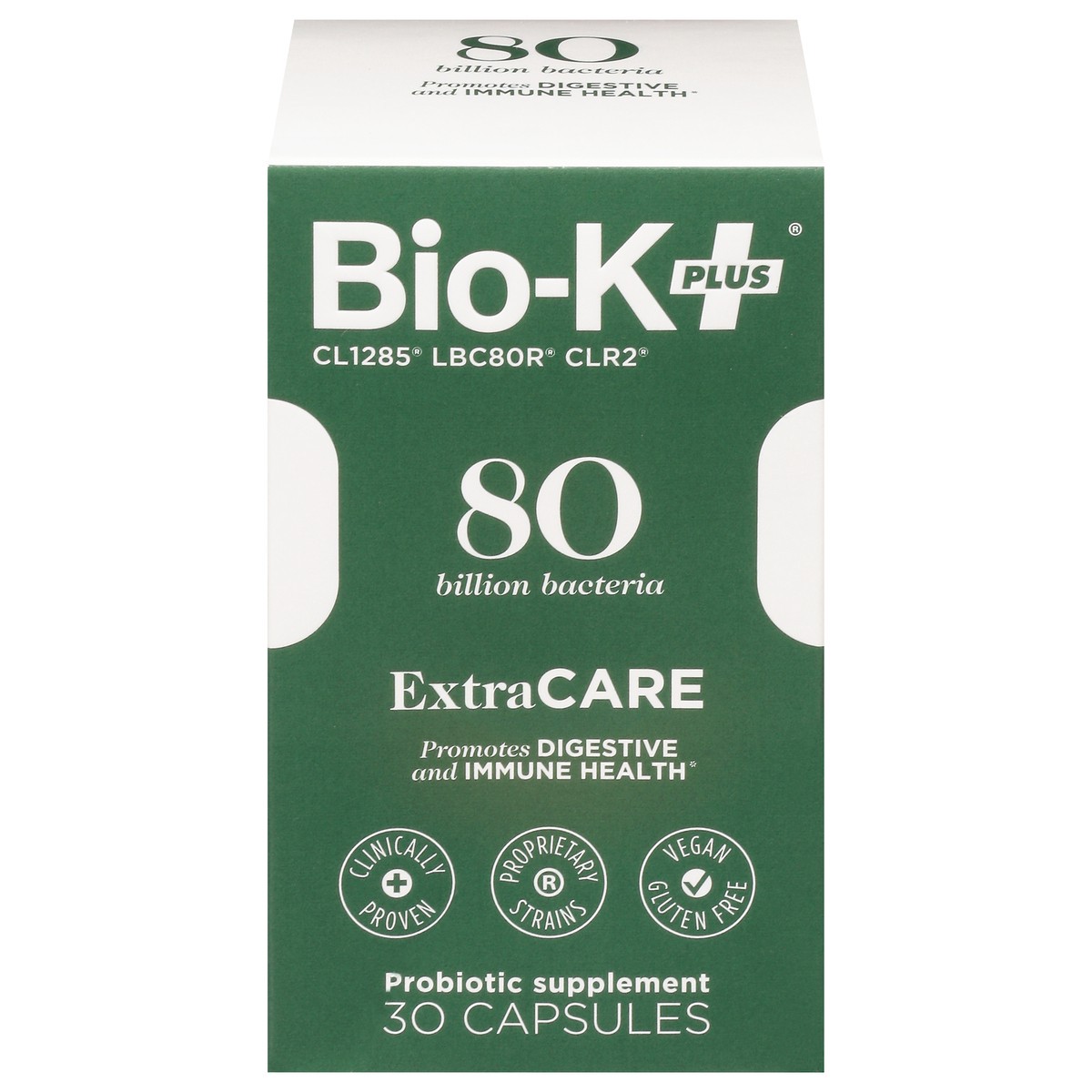 CL1285. LBC80R. CLR2. 80 Billion bacteria. Promotes digestive and immune health. Clinically proven. Proprietary strains. Clinically proven. Bio-K+ provides trusted & effective premium quality probioti…