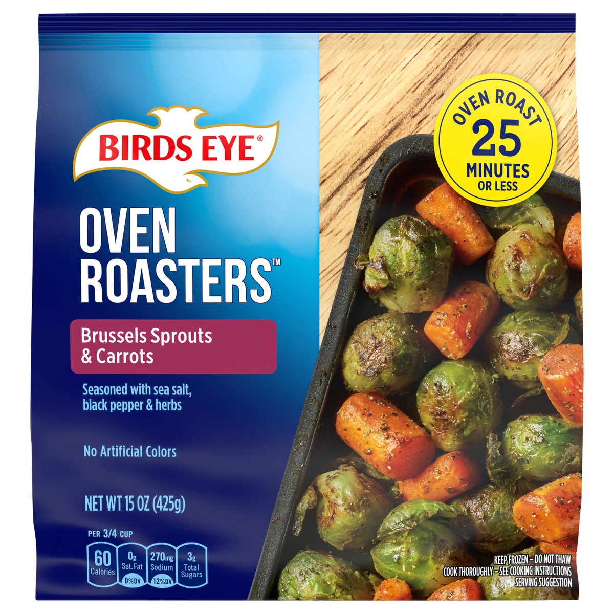 Seasoned with sea salt, black pepper & herb. No artificial colors. Per 3/4 Cups: 60 calories; 0 g sat fat (0% DV); 280 mg sodium (12% DV); 3 g total sugars. Oven roast 25 minutes or less. No artificia…