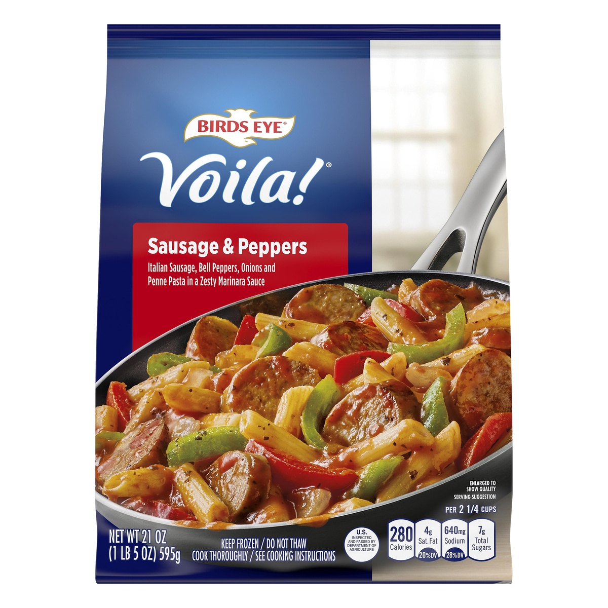 Sausage, red and green bell peppers and penne pasta in a zesty marinara sauce. New No artificial flavors. Pork. Skillet to table in minutes US inspected and passed by Department of Agriculture. Per 21…