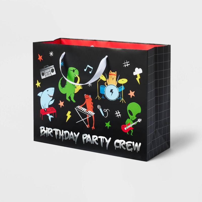 Make your gifts delightful inside-out with the Boy Birthday Vogue Rock Band Gift Bag - Spritz™. With cute creatures jamming and print that says "Birthday Party Crew", it's the perfect themed bag for y…
