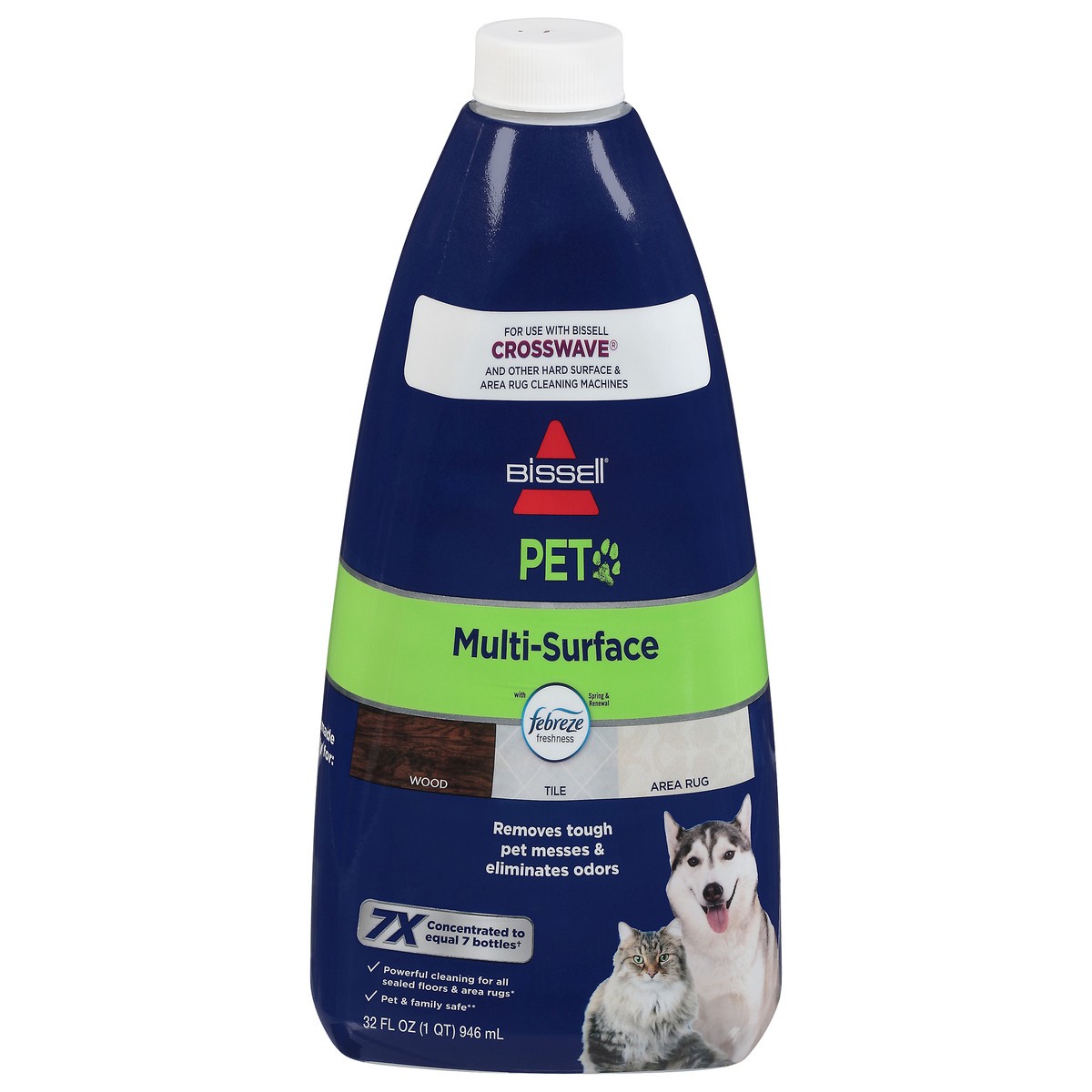 BISSELL® PET Multi-Surface with Febreze Formula is engineered to work with our innovative CrossWave® machines. It also works in BISSELL® JetScrub™ Pet carpet cleaners with the hard floor attachment. T…