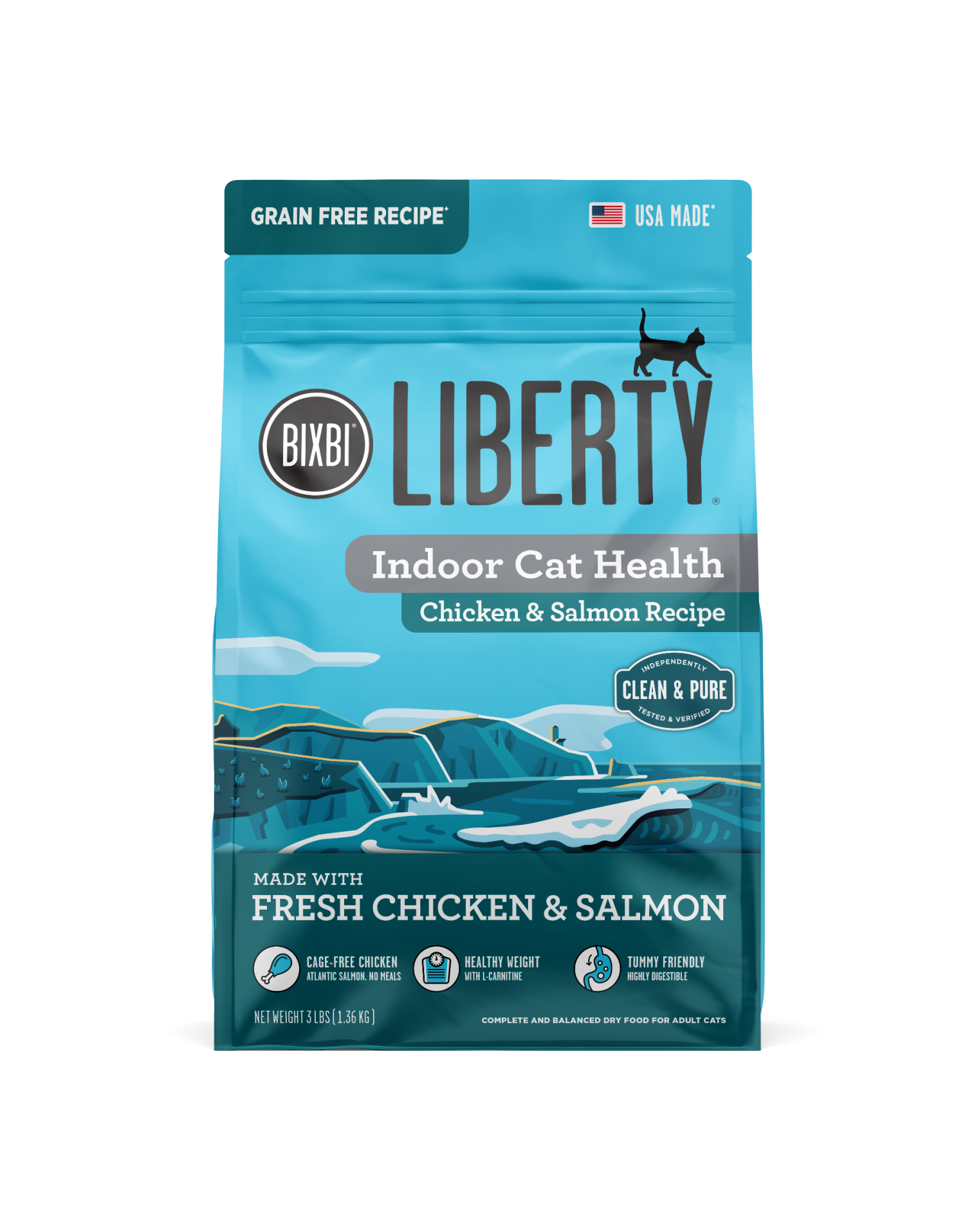 Metabolizable Energy (Calculated): 3,700 kcal/kg, 420 kcal/cup. BIXBI Liberty indoor cat health chicken & salmon recipe is formulated to meet the nutritional levels established by the AAFCO Cat Food N…