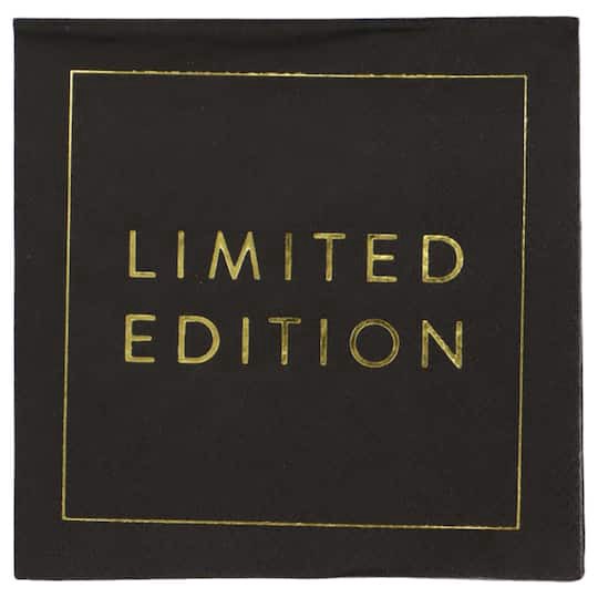 Find these Black & Gold Limited Edition Beverage Napkins, 20ct. by Celebrate It at Michaels. Featuring a gold "LIMITED EDITION" message on black, these disposable paper napkins are great for celebrati…
