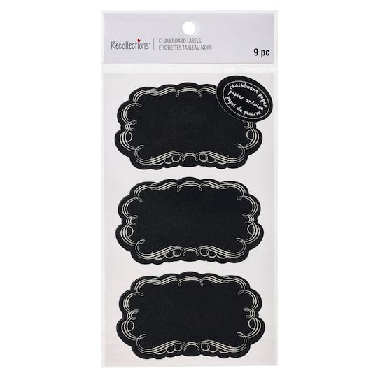 Write messages, directions, or names in pastel or neon colors on these Chalkboard Bubble Labels by Recollections. Black. 3 sheet. White detailing. Scalloped bubble shape. Black Chalkboard Bubble Label…