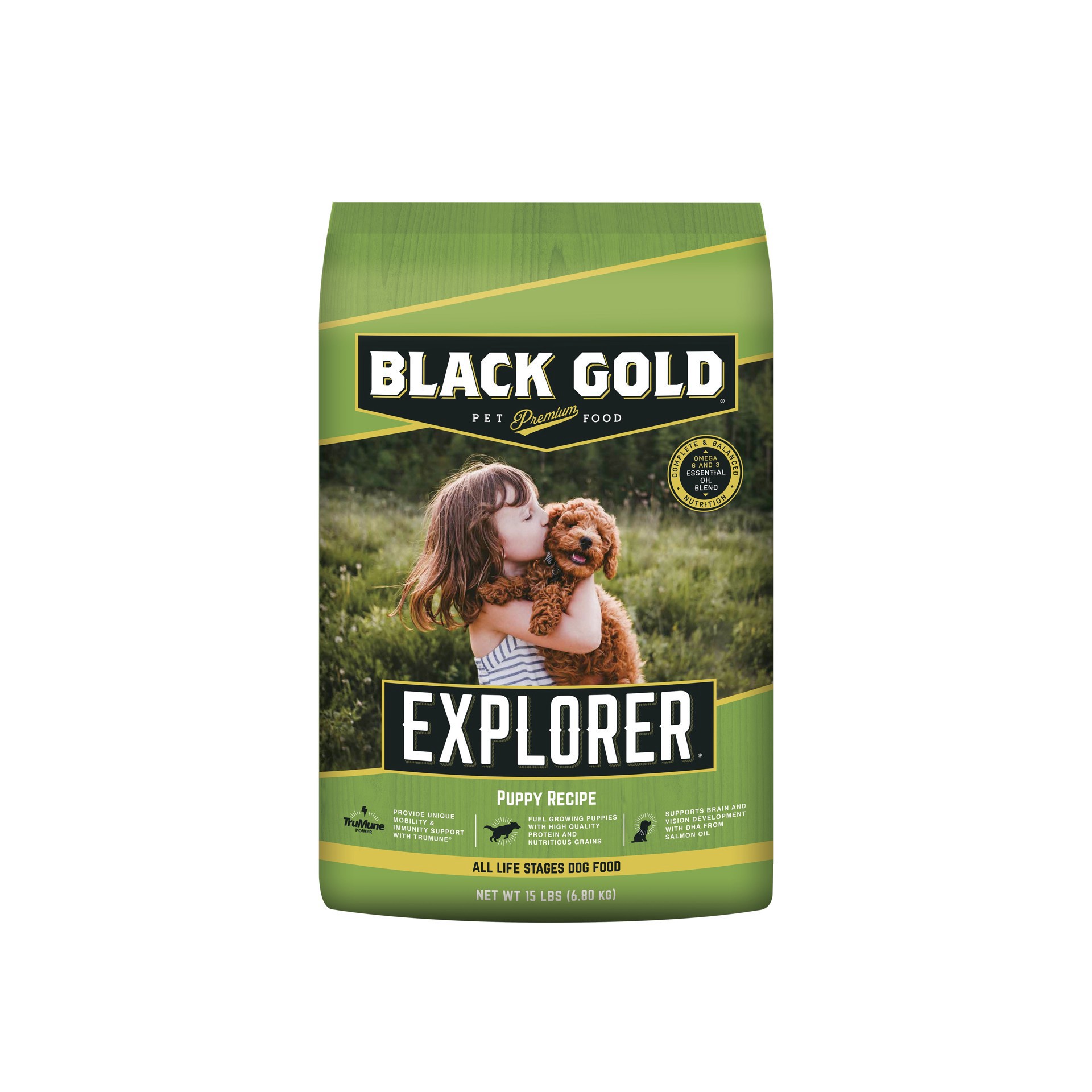 Black Gold Explorer Puppy Recipe is formulated for the growing, adventurous puppy. With DHA from salmon oil to support brain and vision development, calcium and phosphorus to promote proper bone devel…