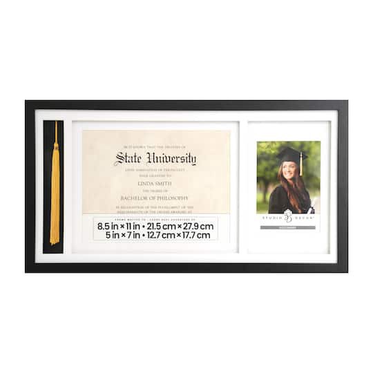 Find the Black Graduation Certificate, Tassel & 5" x 7" Frame by Studio Decor at Michaels. Capture your grad's proud moment this year in this beautiful certification and tassel frame. Black frame. Whi…