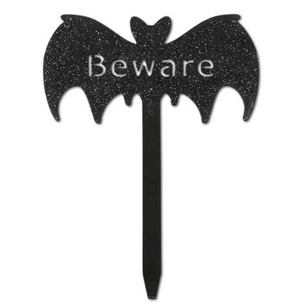 slide 1 of 1, Black Metal "beware" Bat Stake, 1 ct