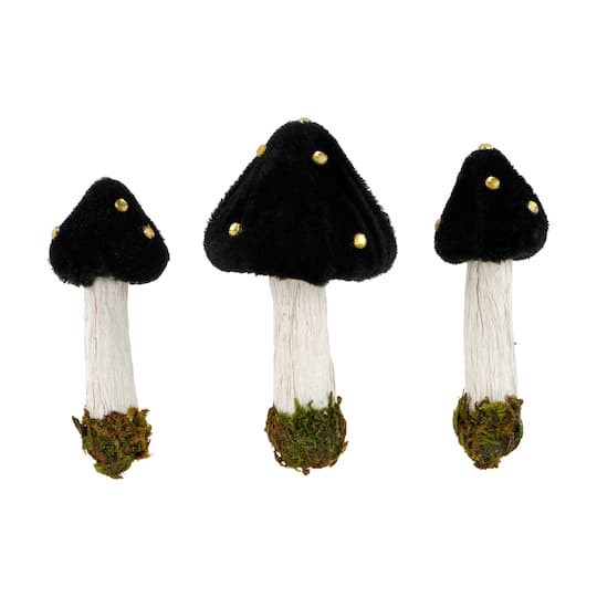 Get the Black Mushroom Set by Ashland at Michaels. This mushroom set would be great embellishments on a wreath or in a DIY decor project. These mushrooms feature a black fabric top and a mossy green b…