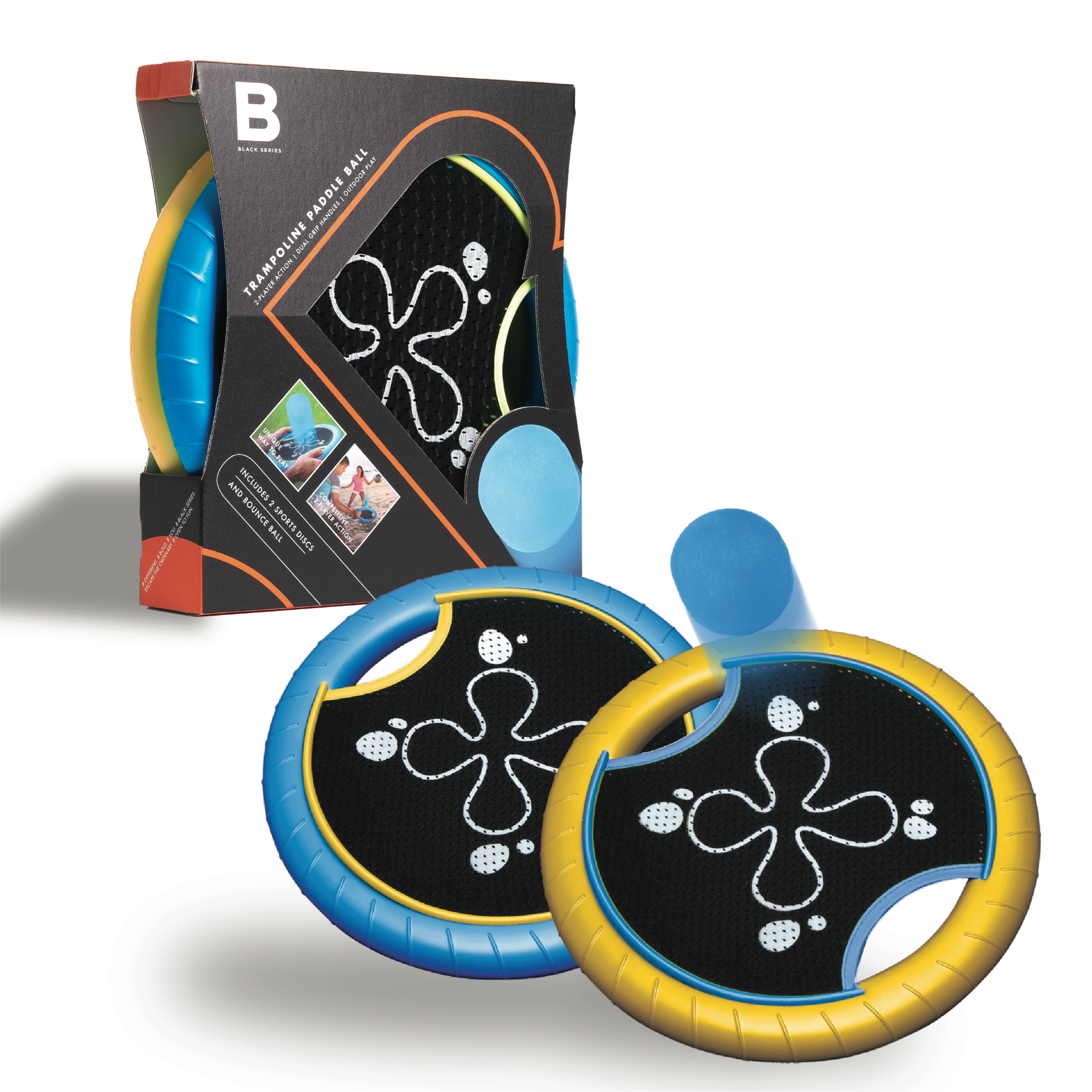 Black Series Trampoline Paddle Ball and Flying Disc Set, Indoor Outdoor Game for Two