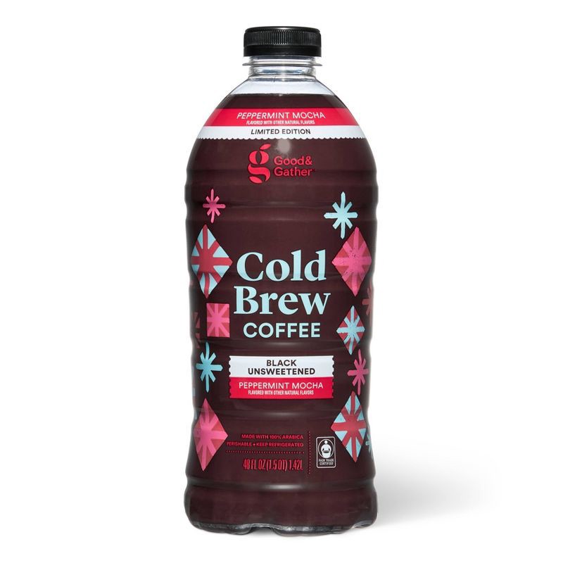 Enjoy classic flavors of the winter season as you sip your morning coffee with this Peppermint Mocha Cold Brew Coffee from Good & Gather™. This smooth, unsweetened cold brew features peppermint mocha …