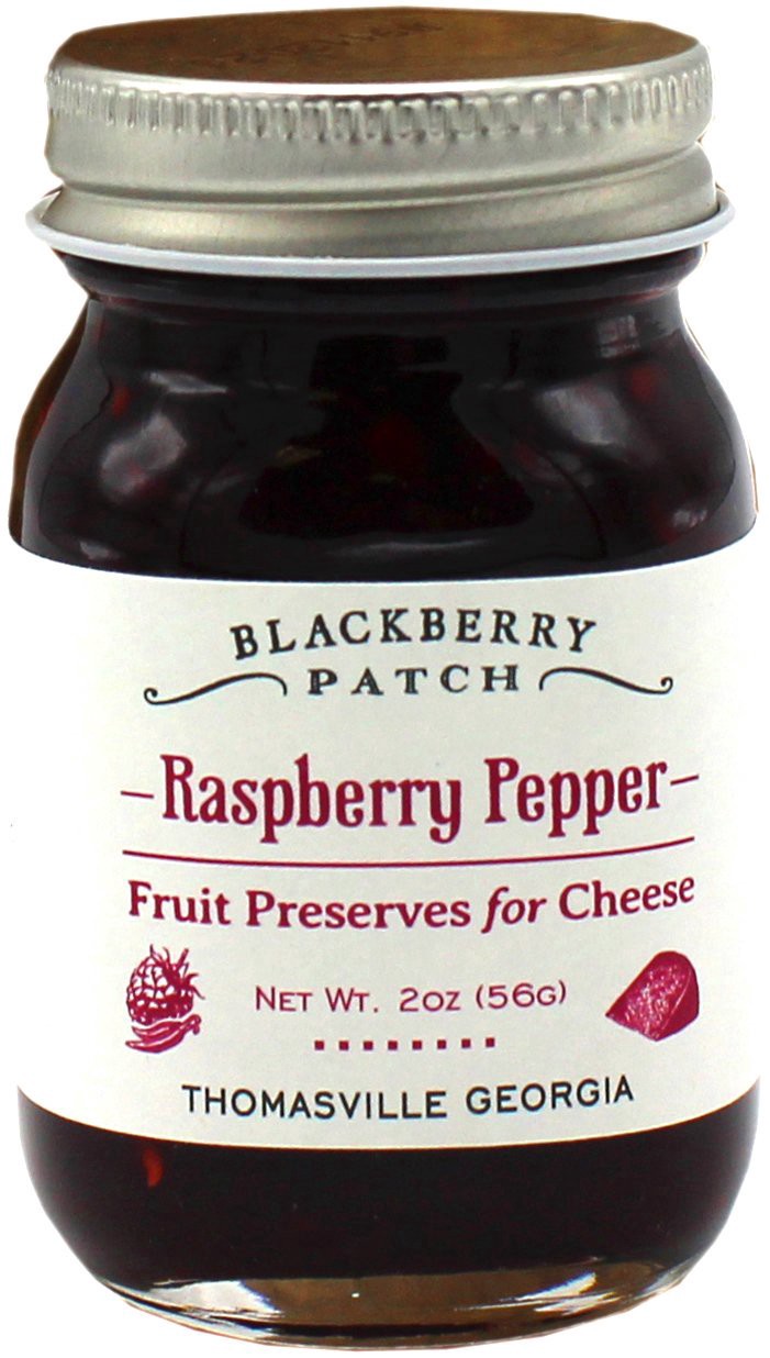 Blackberry Patch Raspberry Pepper Preserve. Raspberries, peppers, and cane sugar simmer in small, handmade batches to create the all natural raspberry pepper preserves.
