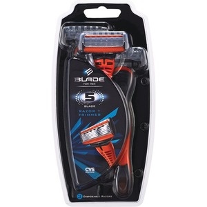 5 blades + 1 trimmer. 5 blades to evenly distribute pressure for a more comfortable, less irritating shave. Trimmer on back of razor for hard-to-shave areas - goatee, sideburns, under nose and back of…