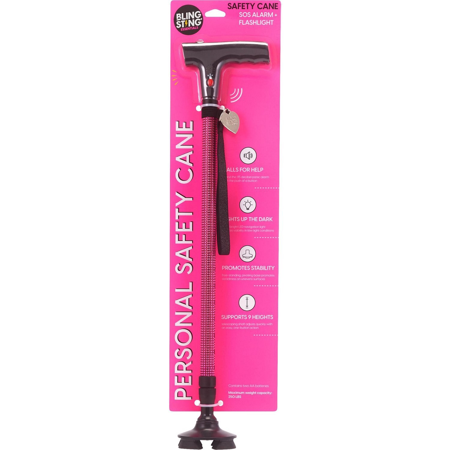 Blingsting Essentials Safety Cane With Alarm & Flashlight