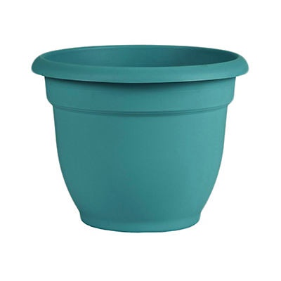 - beautiful rolled rim - punchout holes for drainage - includes self-watering disk - 8.5 in. X 10.8 in. - Bermuda Teal