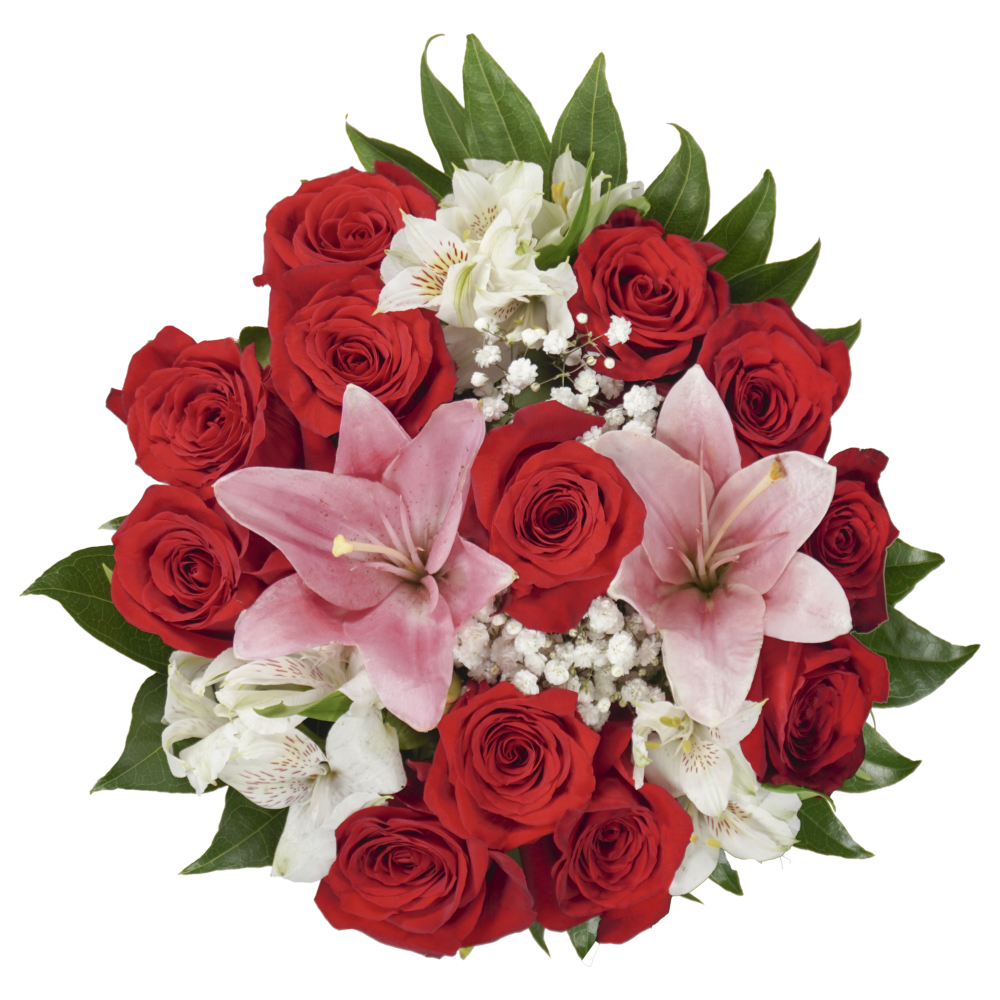 This smashing bouquet delightfully delivers roses and more! Starting with a dozen carefully selected, superior rose varieties, we have paired coordinating blossoms and premium foliage to create our lu…