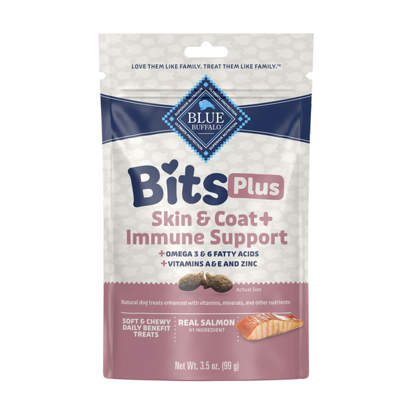 Reward your dog with mouthwatering treats that are both nutritious and delicious. Bite-size BLUE Bits Plus for Skin & Coat and Immune Support contain Omega 3 and Omega 6 fatty acids for healthy skin a…