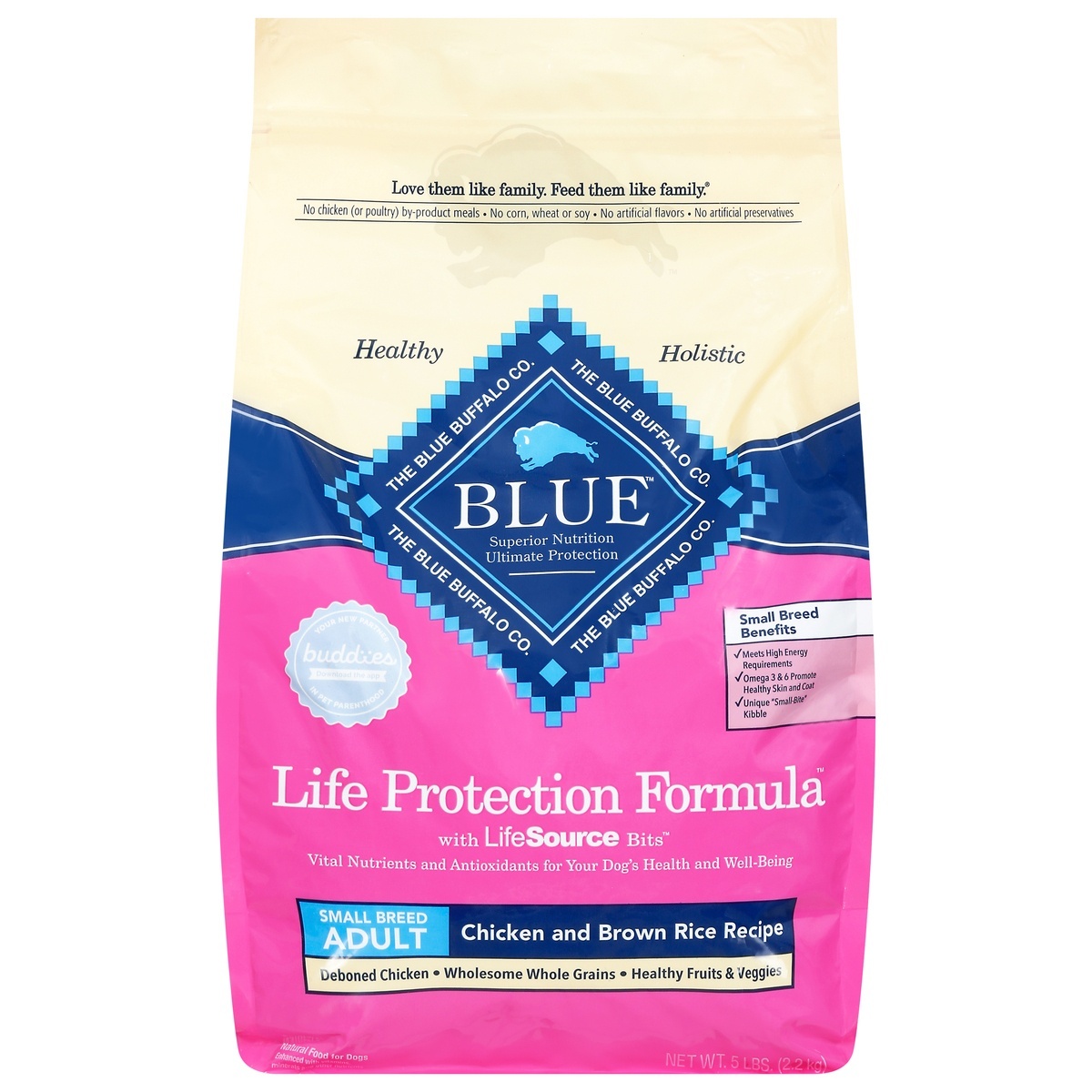 Calorie Content (ME Calculated): 3,665 Kcals/kg, 396 Kcals/cup. Nutrition Statement: Blue Life Protection Formula with LifeSource Bits Chicken and Brown Rice Recipe for Small Breed Adult Dogs is form…
