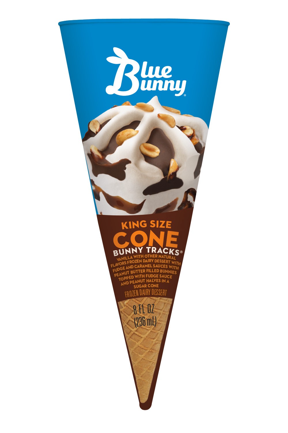Blue Bunny Bunny Tracks Frozen Dessert Cone is big and luscious. This indulgent, crunchy jumbo sugar cone is filled with vanilla flavored frozen dairy dessert swirled with fudge and caramel sauces and…
